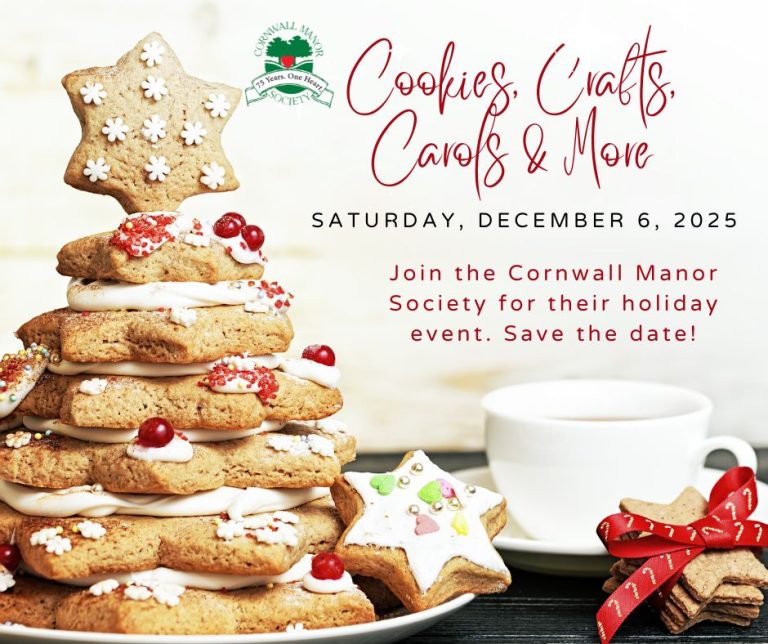 Join the Cornwall Manor Society on Saturday, December 6 from 9 AM to 2 PM for Cookies, Crafts, Carols & More located in the Freeman Community Center and Freeman Auditorium. Enjoy: